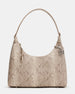 The AMARI BAG SAND SNAKE offers a sleek top-zipper design for secure and easy access. It includes an attachable logo chain charm that adds a refined detail. enhancing its sophisticated style. Inside. a pouch is conveniently placed on the back wall for organized storage of essentials. This shoulder bag blends practical features with elevated design. making it a versatile choice for everyday use.