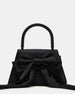 Introducing the sophisticated COSETTE bag. Expertly crafted with smooth satin and a beaded top handle. this elegant bag features a long satin bow and a structured top handle for a touch of glamour. The interior back slit pocket and detachable chain strap add practicality to its angled. trapezoid silhouette. Perfect for any formal occasion. this bag is a must-have for the style-conscious individual.