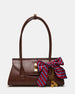 The MILAN BAG CHOCOLATE blends classic menswear-inspired design with modern functionality. This structured. elongated shoulder strap bag features a refined preppy aesthetic. accented by a distinctive bow tie charm paired with a padlock charm for subtle sophistication. Its secure mag snap closure and back zipper interior provide organized storage. making it both stylish and practical for daily use.