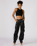 Expertly designed for a structured and voluminous fit. the DUO sequin pant is crafted from midweight cotton twill fabric. With adjustable ankle straps. these wide leg cargo pants offer a versatile silhouette that can be easily customized to your preference.