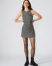 This sleeveless mini dress features a classic tweed design. offering a sophisticated yet modern look. Its tailored silhouette is enhanced by faux pockets. adding style without bulk. Perfect for elevating your wardrobe with a chic. versatile piece that transitions seamlessly from day to night.