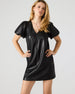 This TILLY short-sleeved mini dress features a sleek faux leather finish and a flattering V-neckline. combining edgy style with a modern silhouette. Perfect for making a bold statement. it offers a sophisticated yet daring look suitable for various occasions.