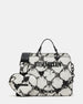 Clever interior organization and a matching pouch give the compact EVELYN BAG DRIPPY HEARTS WHITE/MULTI surprisingly roomy storage. Reinforced edges. structured side gussets. and custom hardware add to the substantial look and feel of this top-handle design.