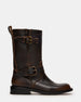 The IRVING BLACK DISTRESSED boot channels authentic moto aesthetics with strategic buckle accents and a refined round-toe construction. This distressed style delivers rugged character while maintaining polished sophistication. A statement boot that balances edge with versatility.