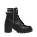 Tap into your bad girl side with JAYDIN. A tough combat boot is lifted on a block heel with a lug sole and features gleaming pyramid studsLeather or vegan leather upper material