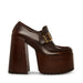 The KERIGAN shoes exaggerate the classic loafer silhouette with an extra high block heel balanced by a front platform.