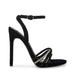 The LARA sandals are a strappy look elevated on a stiletto heel and embellished with sparkling rhinestones on the front straps.