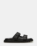 The LUXOR BLACK slide sandal combines understated elegance with everyday comfort. Featuring a contoured footbed that molds to your foot's natural shape. this design delivers support through extended wear. Rounded toe styling offers a refined silhouette. while adjustable buckle straps ensure a customized fit. Crafted with the discerning eye for quality footwear. this versatile slide transitions seamlessly from casual outings to relaxed weekend wear.