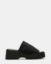 True SM stans can't help but love this iconic sandal. the SLINKY. Characterized by a sculpted platform sole and stretchy fabric upper. this shoe is recognizable for any Steve Madden fan.